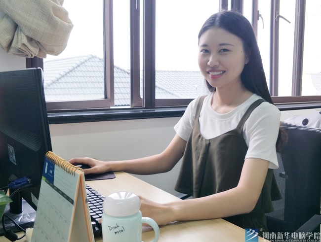 由于在初高中课程满,空闲时间少,再加上父母管理严格,郑雅倩接触电脑比较少,对电脑的唯一认知就是可以看电视、听音乐。可以说,那时的她是个十足的电脑菜鸟。进入新华的第二天,面对上实训课使用的一体机,郑雅倩除了开机和插数据线外,其他的都不知道。就这样,一个电脑菜鸟进入了浩瀚的互联网世界。
