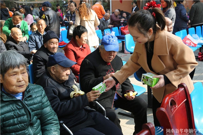 新华学生为老人送上礼物